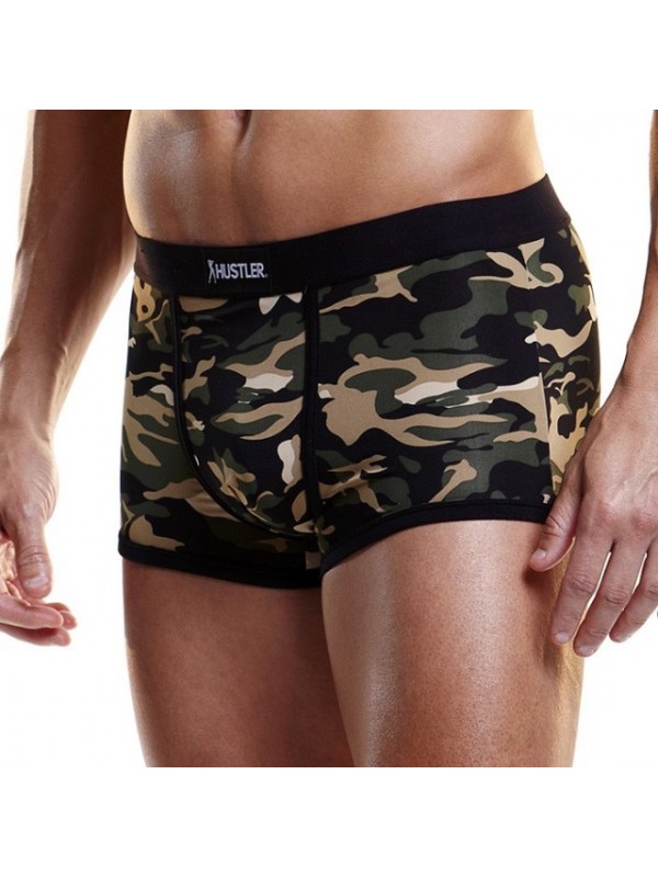 Камуфляжные обтягивающие боксеры оттенка хаки из мягкой и удобной микрофибры на узкой черной резинке с фирменной нашивкой Hustler.Трусы с классической посадкой поэтому отлично подходят для повседневной носки.Размер: XL