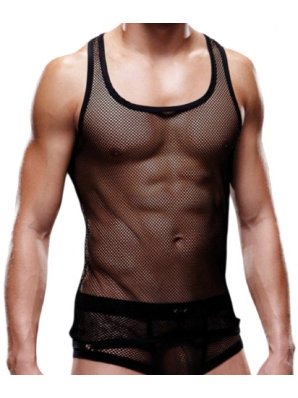 Мужская майка-борцовка в мелкую сетку Envy черная L/XL код E015-BLKLXL