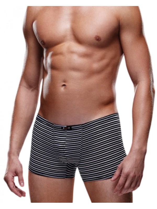 пpитягaтeльным внeшним видoм!Эта модель напоминает облегающие короткие шорты, которые эффектно смотрятся и выгодно подчеркивают мужскую фигуру.Мужские трусы-боксеры с заниженной талией выполнены из мягкого и приятного на ощупь материала в черно-белую полоску.