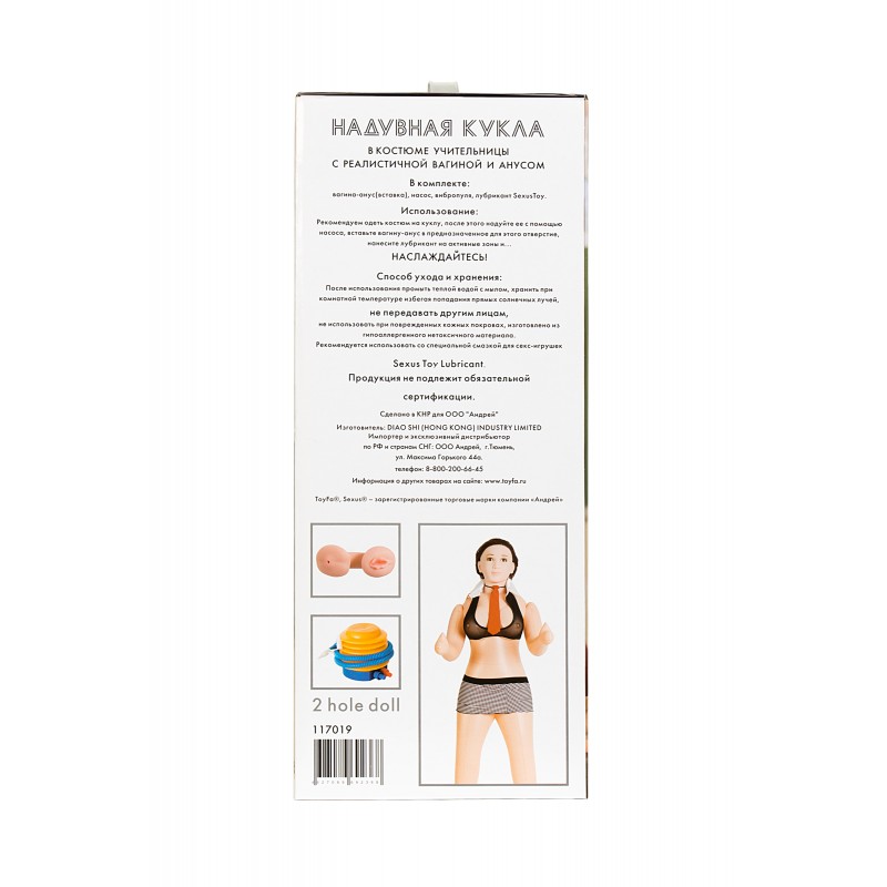 Заняться любовью со страстной училкой - одна из самых популярных сексуальных фантазий любого мужчины еще с выпускного класса. Теперь фантазию легко воплотить в реальность. С этой темноволосой возбужденной преподавательницей вы можете с увлечением проходить любые уроки интимного характера, и двойку на этот раз вам никто не поставит... С ней воплощать скрытые желания проще простого, ведь она создана для того, чтобы доводить до фееричного оргазма! Эта брюнетка обожает вагинальный и анальный секс, её интимные места выполнены из киберкожи — невероятно приятного на ощупь материала. Помимо этого, кукла имеет реалистичную голову, подвижные согнутые руки и большую упругую грудь. Пришло ваше время задавать домашнее задание!