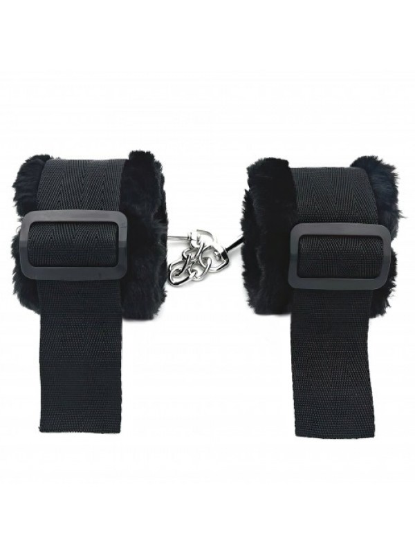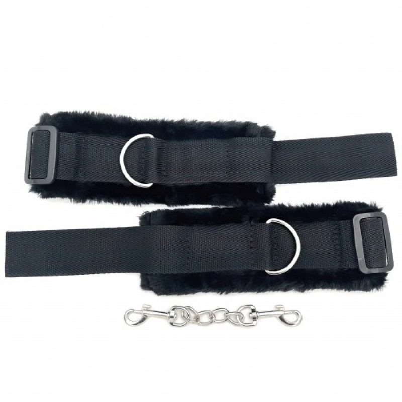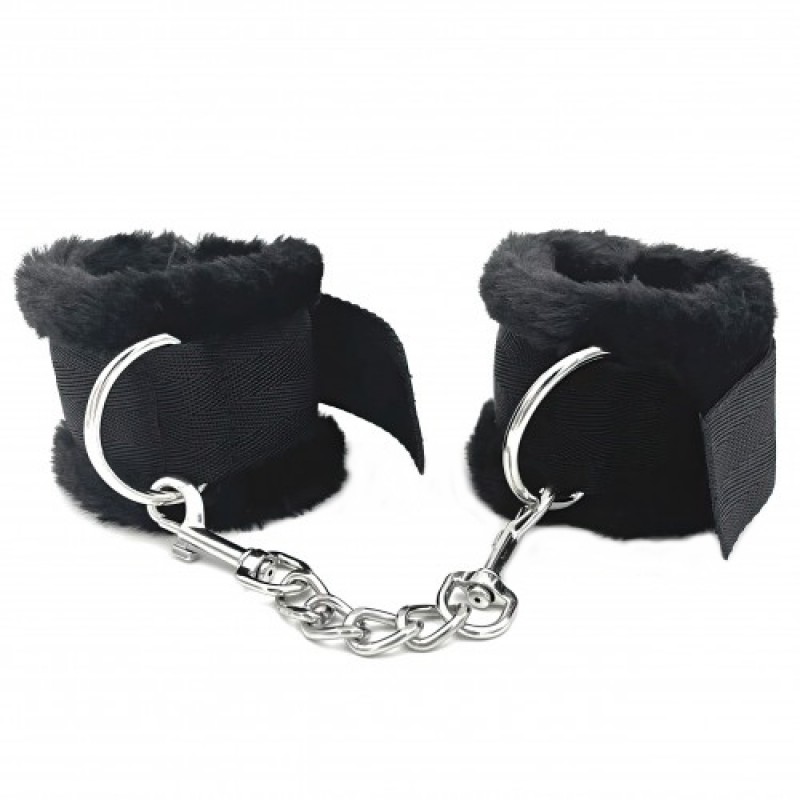Наручники не причинят боли, так как их внутренняя сторона отделана мягким мехом. Соединяются между собой цепочкой с двумя карабинами на концах.Размер: общая длина 20 см, ширина 7 см, длина цепочки с карабинами 15 см, по обхвату регулируются от 12 до 22 см