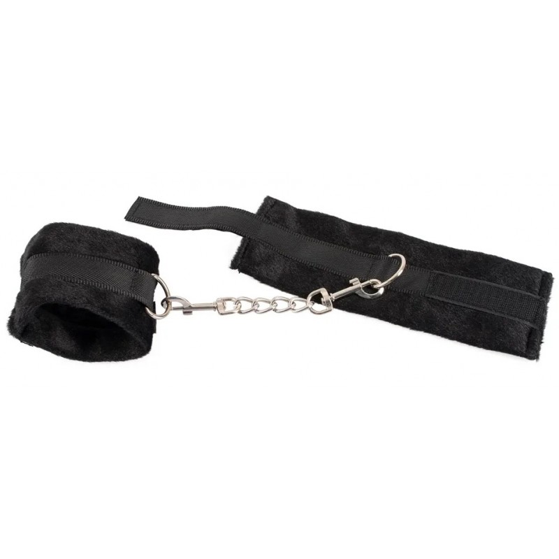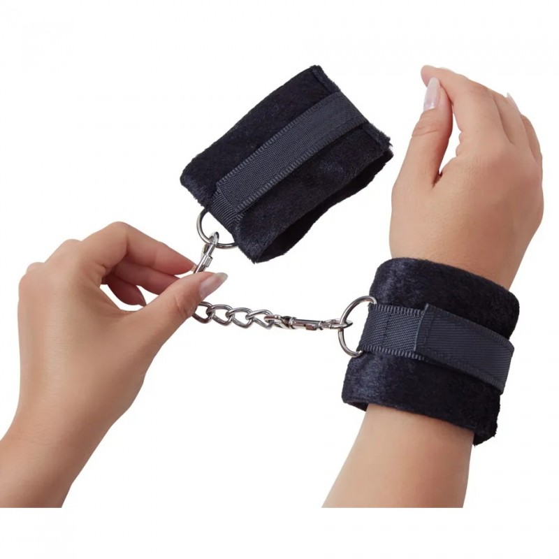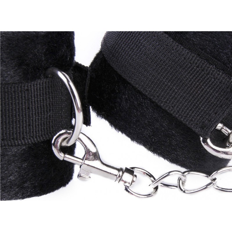 Наручники не причинят боли, так как выполнены из мягкого плюша. Соединяются между собой цепочкой с двумя карабинами на концах.Размер: общая длина 22 см, ширина 7 см, длина цепочки с карабинами 15 см, по обхвату регулируются от 12 до 22 см