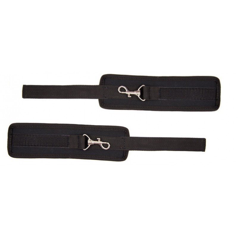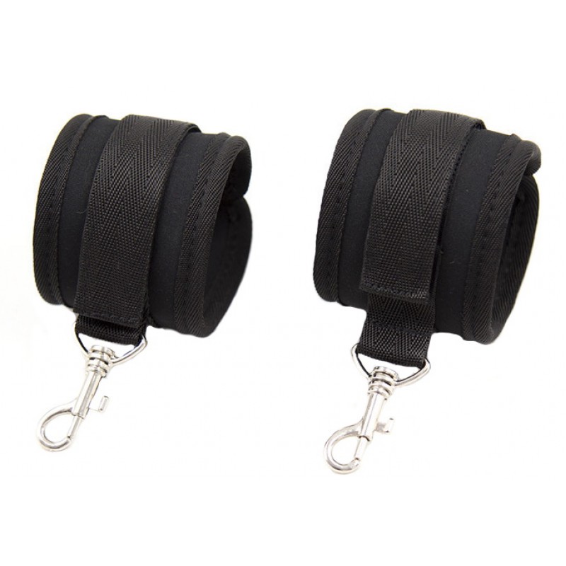 Наручники выполнены из текстиля, Вы не почувствуете никакого дискомфорта во время использования. Оснащены карабинами, которые можно соединить между собой или же зафиксировать к кровати - решать только Вам!Размер браслетов регулируется при помощи липучек, что позволяет подобрать комфортный обхват как на женское, так и на мужское запястье.Размер: общая длина 38 см, ширина 6 см