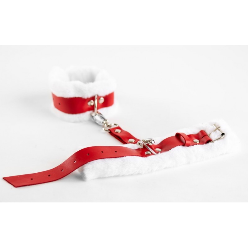 Оковы из натуральной кожи с нежным мехом Red код BA20003