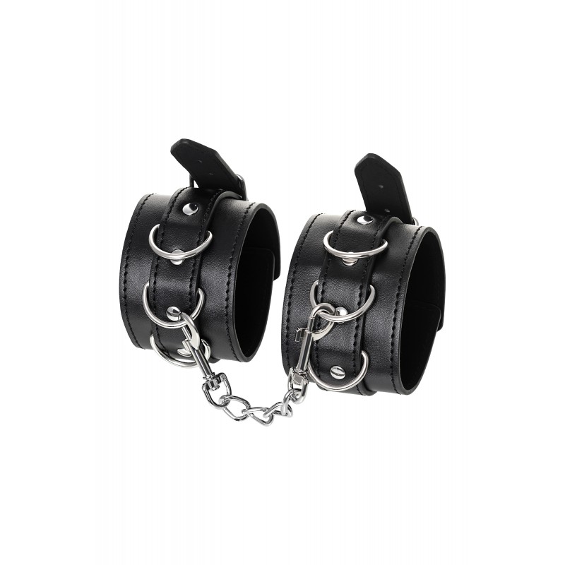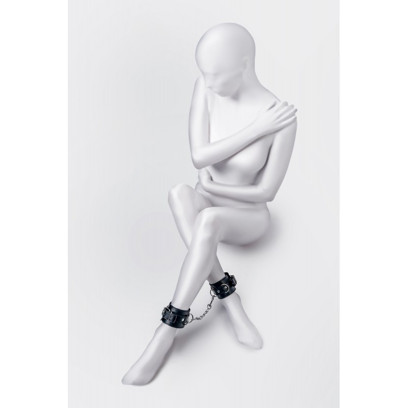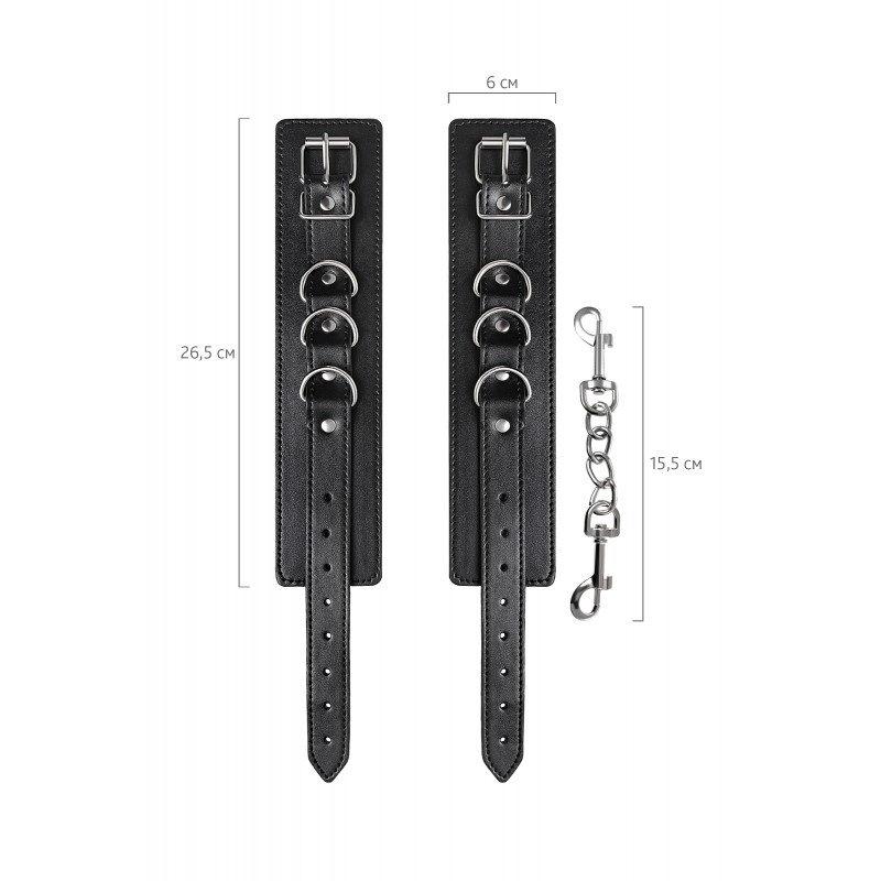 Черные оковы с металлической отделкой – брутальные ограничители свободы. К тому же, они на самом деле весьма жестко обхватывают ноги и надежно соединяют их между собой цепочкой на карабинах. Три кольца для крепления дают возможность дополнить поножи аксессуарами и использовать различные варианты фиксации. Длина оков позволяет использовать их практически на любой размер ног. Отрегулировать размер и силу обхвата легко с помощью ремешка и металлической пряжки. Черные оковы с металлической отделкой – это стиль и функционал. Теперь Доминант покажет, что значит грубое обращение и полный контроль над свободой. Материал: PU кожа, металл Цвет: черный Длина: 26,5 см Ширина: 6 см Длина сцепки: 15,5 см