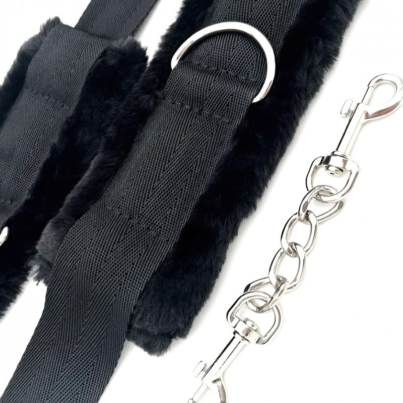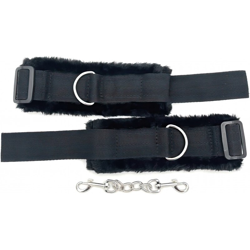 Наручники не причинят боли, так как их внутренняя сторона отделана мягким мехом. Соединяются между собой цепочкой с двумя карабинами на концах.Размер: общая длина 20 см, ширина 6,2 см, длина цепочки между карабинами 5 см, по обхвату регулируются от 14 до 25 см