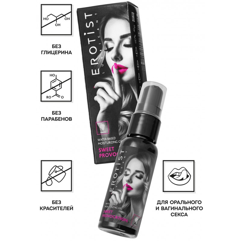 Оральный гель Erotist Sweet Provocation со вкусом винограда придаст Вашим любовным ласкам особое удовольствие!Erotist Sweet Provocation разработана специально для орального удовольствия. Съедобный лубрикант – это прямая дорога к многочисленным страстным глубоким минетам и дерзким кунилингусам!