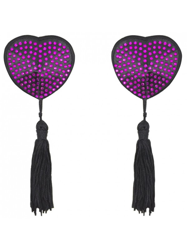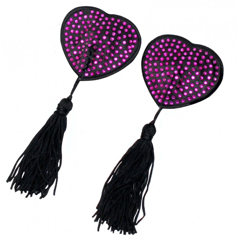 Черные пэстисы с ярко розовыми стразами и кисточками код 202301002