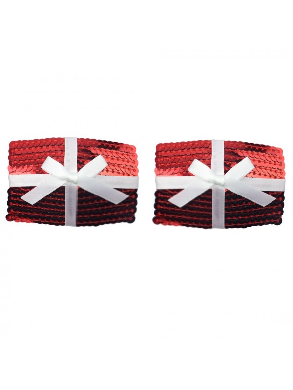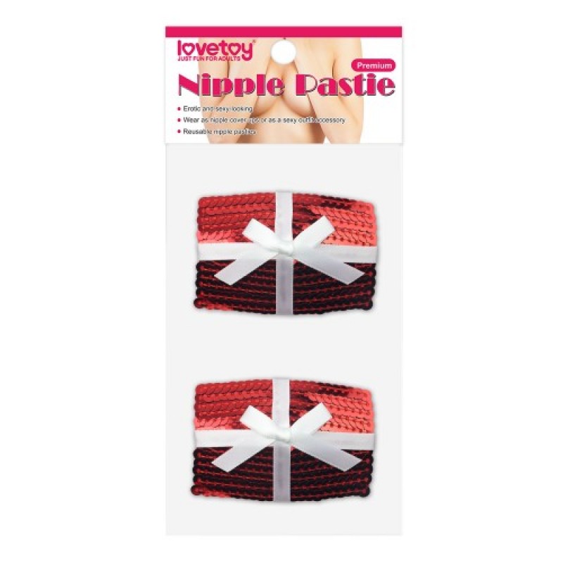 В этом случае, Вам пригодятся сексуальные аксессуары, одними из которых являются пэстисы!Пэстисы фиксируются на груди с помощью клейкой прокладочки, они хорошо держатся на теле, но, в то же время, их удобно быстро снять! Пэстисы, слегка прикрывая сосочки, создадут элемент загадочности и легкой неприступности и еще больше заведут вашего мужчину!Пэстисы полностью покрыты красными пайетками, сверху украшены белым бантиком!