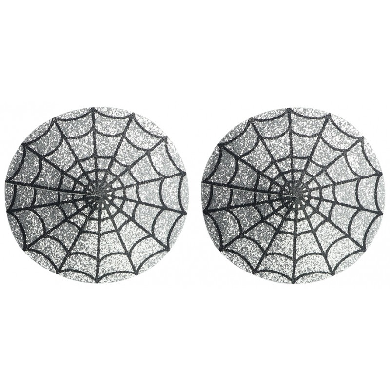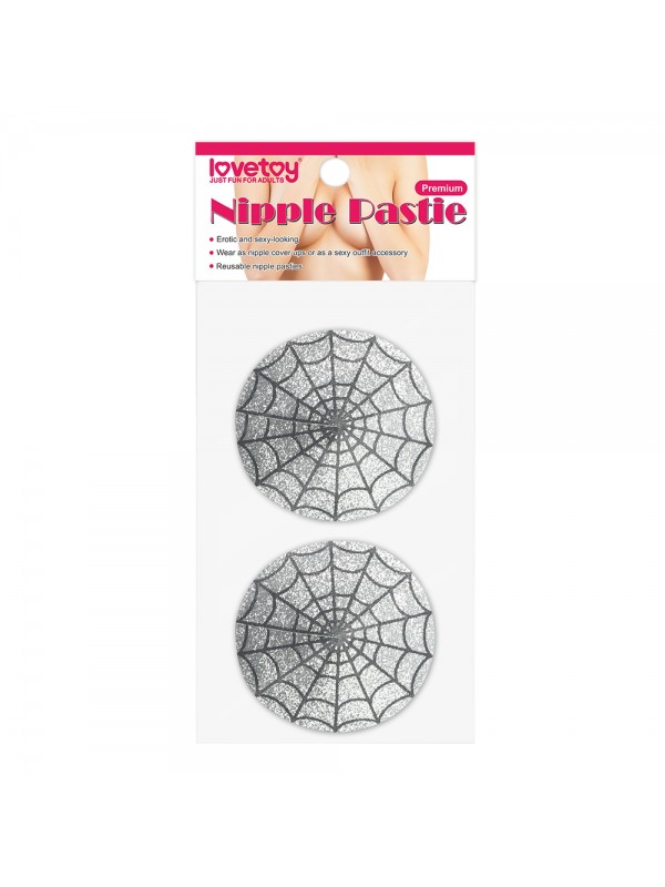 Серебристые пэстисы-паутинка для груди Reusable Glitter Heart Tassel Nipple Pasties код LV763015
