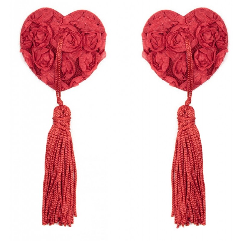 Красные пэстисы в форме сердца, украшенные маленькими розочками, подойдут для придания женственности и игривости!