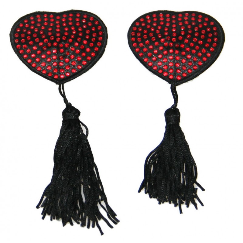 Пэстисы-сердечки со стразами и кисточками код 202001002