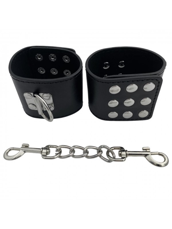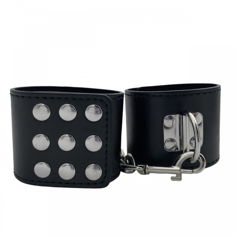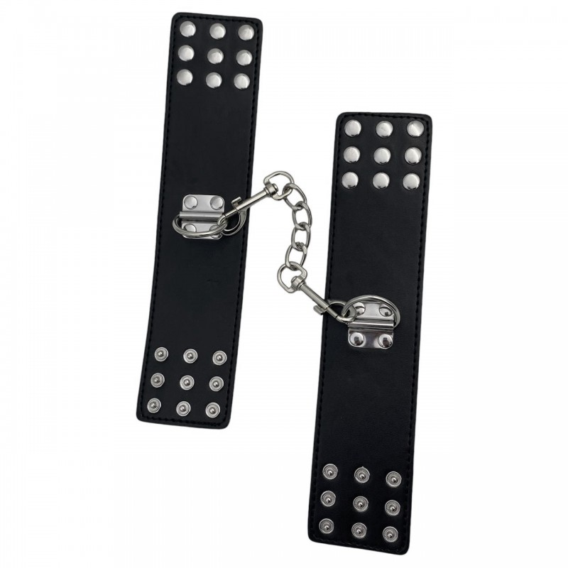 Ночь будет очень жаркой, если Вы привнесете в нее разнообразие с помощью наручников!Легко, но надежно наручники фиксируются заклепками, позволяющими выбрать нужный размер. Выполненные из искусственной кожи, они не натирают и не пережимают, максимальный комфорт Ваших игр обеспечен!Наденьте эти оковы на Вашего партнера, или же позвольте ему сковать Вас...