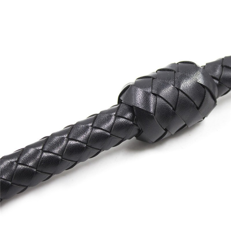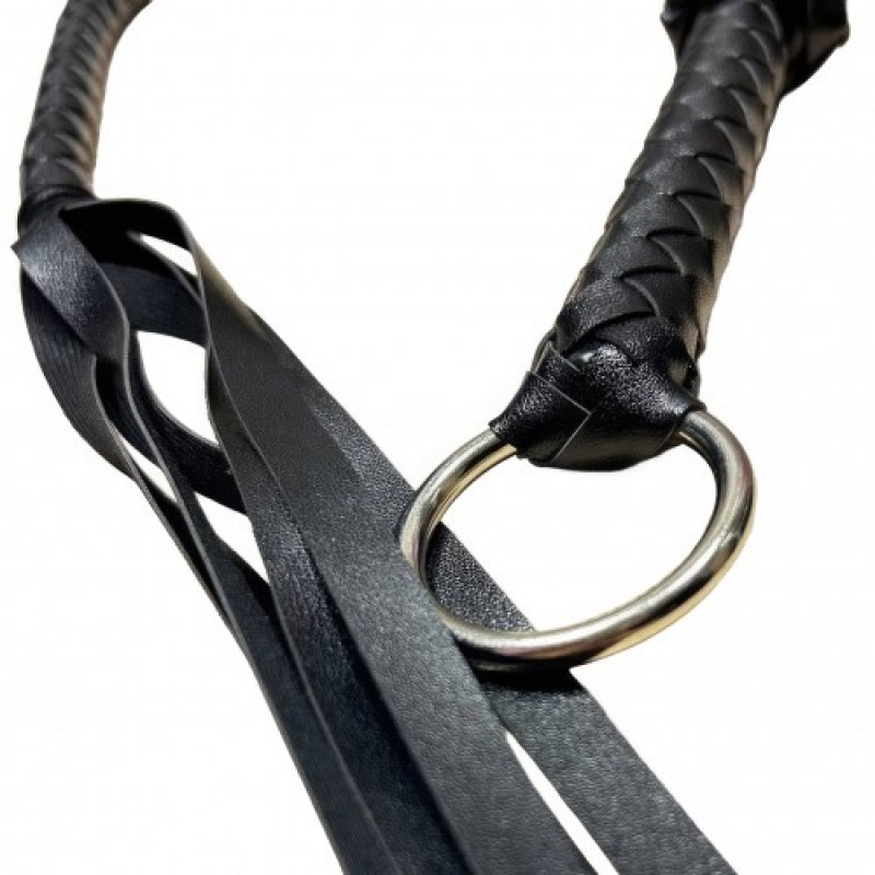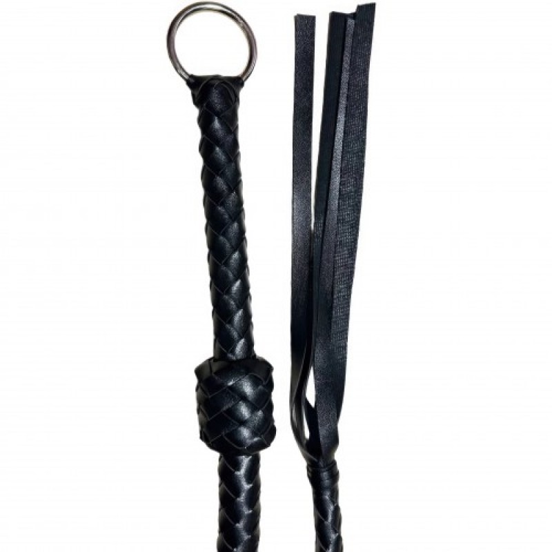 Кнут выполнен из искусственной кожи черного цвета с необычным плетением: он постепенно утончается к концу, на котором крепятся хлысты, на другой стороне кнута расположено удобное кольцо для держания.Размер: общая длина с кольцом 109 см, длина 106 см, длина рукояти 20 см