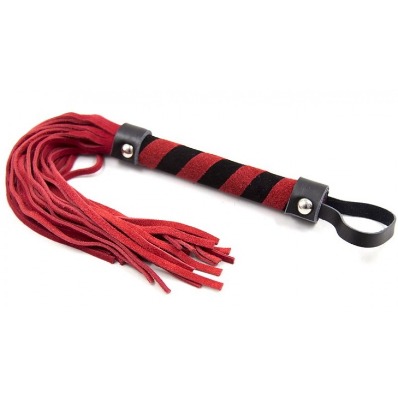 Плеть идеально подойдет для нескучного вечера и для того чтобы разнообразить Вашу интимную жизнь, внести в неё столь сладкие нотки БДСМ!Сама плеть выполнена из замши, ручка украшена черно-красным спиральным узором. На конце имеется петелька для того, чтобы аксессуар не выпал из рук даже во время самых страстных игр!Размеры: общая длина 40 см, длина ручки 16 см, длина хвостов 24 см