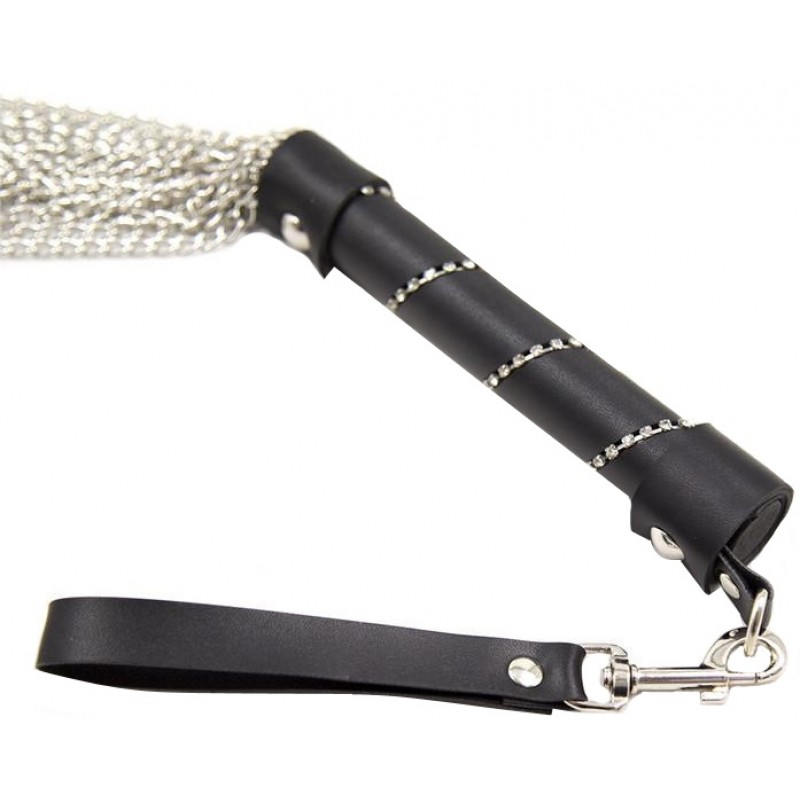 Металлическая плеть имеет необычный дизайн - ее ручка выполнена и искусственной кожи и декорирована стразами - очень стильно!