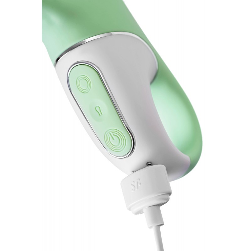 МЯГКАЯ ВАКУУМНАЯ УПАКОВКА Satisfyer Air Pump Bunny 5, силикон, зеленый, 15 см.