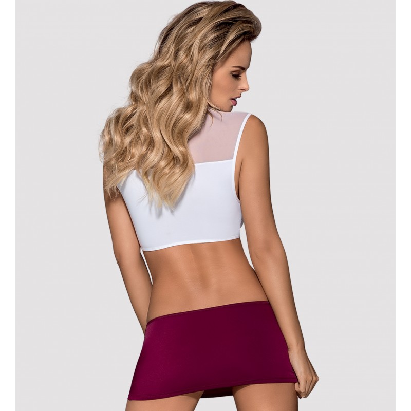 Что может быть сексуальнее, чем очаровательная девушка в костюме соблазнительной студентки!Озорная студентка всегда должна находиться под чутким руководством своего преподавателя, ведь ей необходимо учиться только "на отлично"! А ведь скоро придет сессия!В костюме студентки «Obsessive» действительно удобно и приятно посещать лекции и делать задания преподавателя. И делать их надо обязательно с любимым наставником, ведь такой метод позволит лучше и глубже окунуться в учёбу!Костюм состоит из коротенькой бордовой юбочки, которая открывает соблазнительные ножки и делает акцент на бедрах. Верх представлен белым укороченным топом с полупрозрачными вставками, который привлекает все внимание к вашей груди. Комплект дополняют белые гетры с бордовыми бантиками и бордовые стринги, которые делают весь комплект более пикантным!