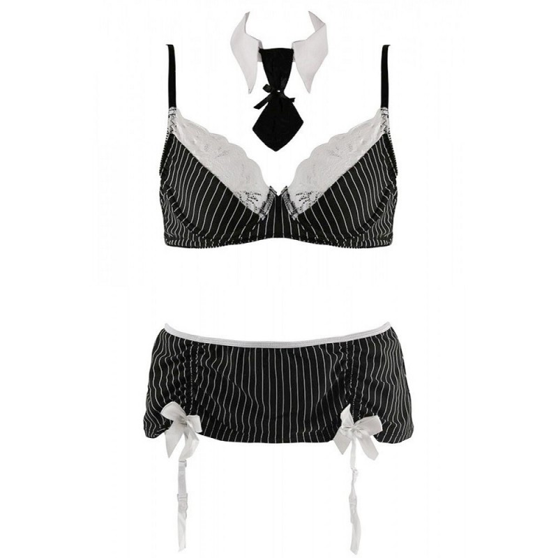 с подвязками для чулок и белоснежный воротничок-стойка с галстуком черного
