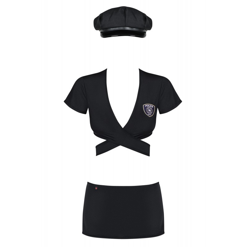 Правило четвертое: сексуальный головной убор полицейского, который будет дополнять ваш наряд не только в постели;)Детали: кепка с декоративными рюшами и блестящим козырьком, топ с кроем, подчеркивающим бюст, застежка на спине, обеспечивающая идеальную посадку, жетон полиции на груди, мини-юбка с эффектными разрезами, соблазнительные стринги, эластичная ткань Multistretch.Комплект состоит из: