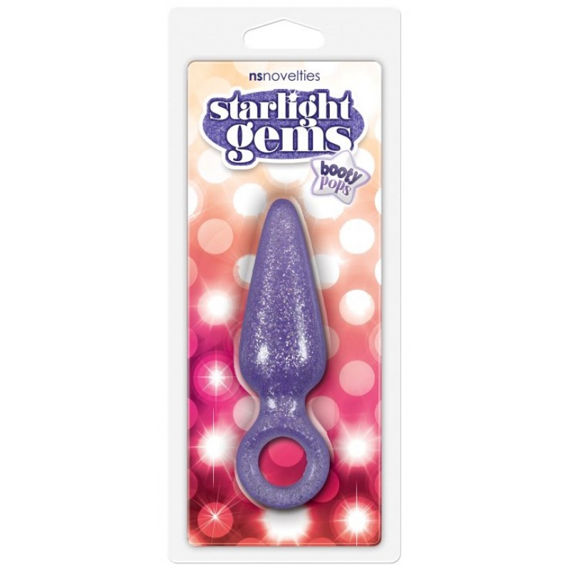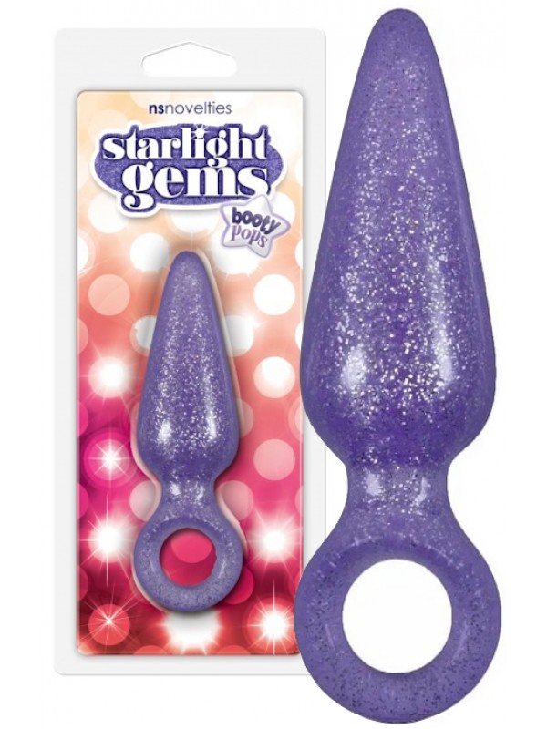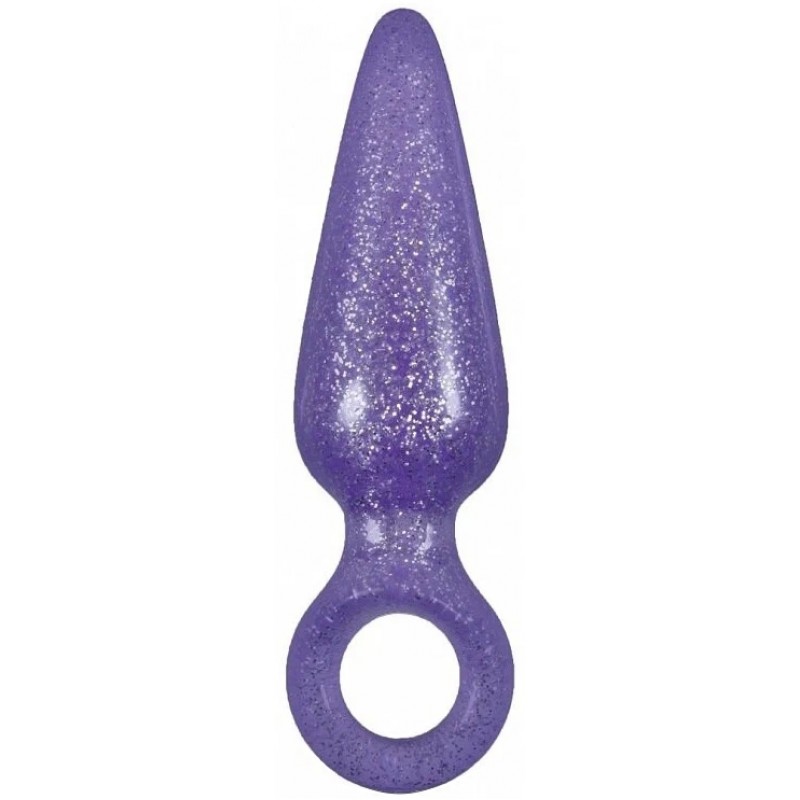 Блестящая анальная втулка Booty Pops с кольцом на пальчик фиолетовая код NSN-0280-15