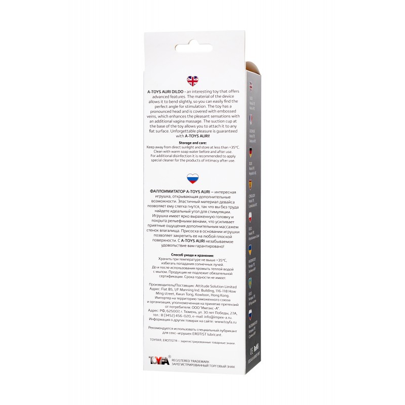 Фаллоимитатор A-Toys Auri – интересная игрушка, открывающая дополнительные возможности. Эластичный материал девайса позволяет ему слегка гнутся, так что вы без труда найдете идеальный угол для стимуляции. Игрушка имеет ярко выраженную головку и покрыта рельефными венами, что усиливает приятные ощущения дополнительным массажем стенок влагалища. Присоска в основании игрушки позволяет закрепить ее на любой плоской поверхности. С A-Toys Auri незабываемое удовольствие вам гарантировано! Общая длина: 20 см Рабочая длина: 18,5 см Диаметр: 3,4 - 3,8 см