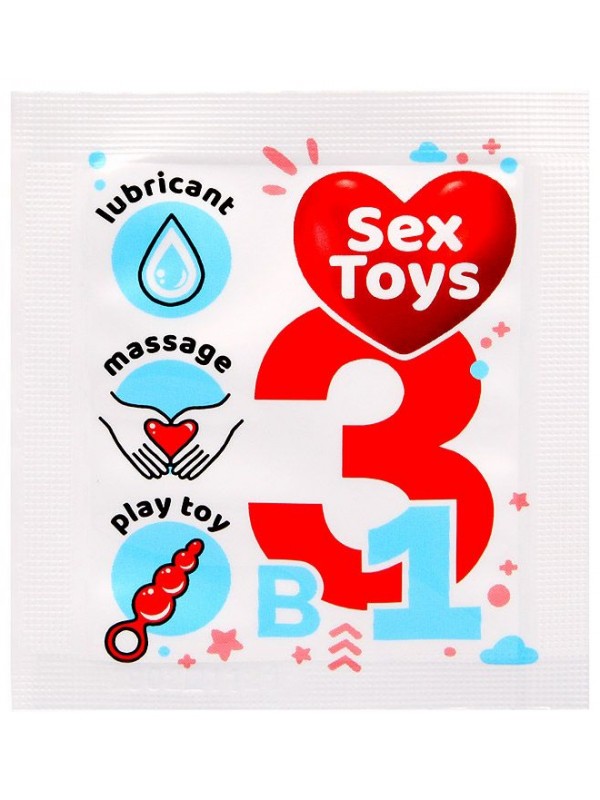 Универсальный гель-любрикант на водной основе «Sex Toys» 3 в 1 может применяться для различных любовных забав!В качестве любриканта во время полового контакта - великолепно увлажняет интимные зоны, обеспечивает комфортное и продолжительное скольжение. Не стекает и длительно удерживается на поверхности.Для использования совместно с секс-игрушками - подходит для всех видов полимерных материалов, не разрушает структуру эротических аксессуаров, способствует лёгкому проникновению и отличному скольжению.В качестве средства для эротического массажа - во время стимуляции интимных зон помогает раскрепоститься и повысить чувственность.В состав лубриканта входит биоактивный комплекс из экстракта алоэ вера, витамина Е и аллантоина, который увлажняет, смягчает кожу, способствует быстрому восстановлению слизистых в случае их механического повреждения. Любрикант легко смывается водой.Применение: Перед интимной близостью нанесите тонким слоем на половые органы (половые губы, клитор, вход во влагалище). Объем: 4 мл