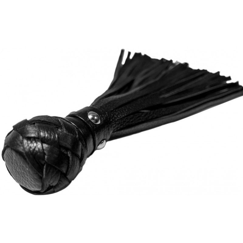 Плеть разогреет страсть в любой БДСМ игре, можете в этом не сомневаться!Необычная плеть выполнена из натуральной кожи черного цвета, что позволит шлепать вашего партнера так сильно, как вам захочется - не ограничивайте себя во власти или получайте удовольствие от сладких ограничений!Мини-рукоятка декорирована плетением и металлической фурнитурой, очень комфортно ложится в руку! Данную плеть можно использовать и как генитальную, чтобы добавить новых ярких ощущений!