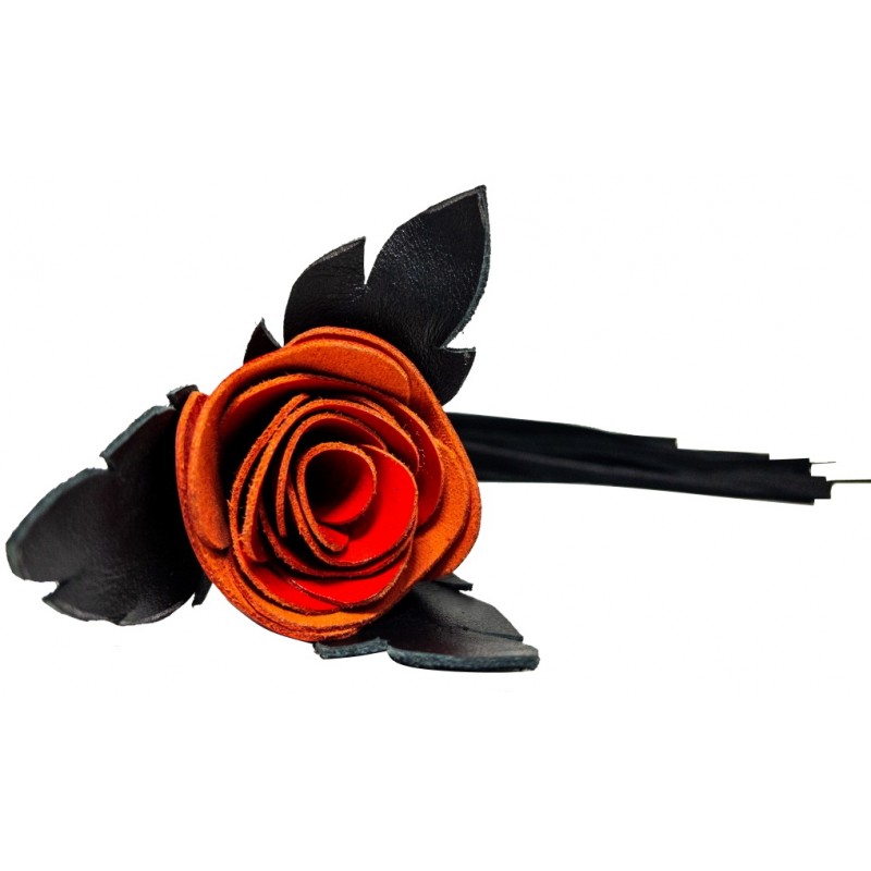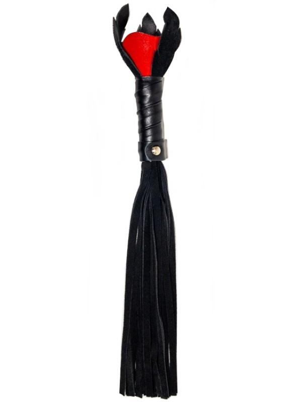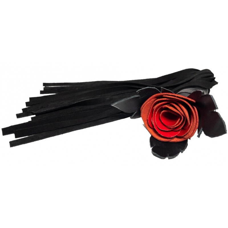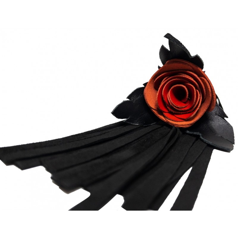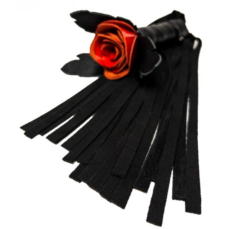 Плеть разогреет страсть в любой БДСМ игре, можете в этом не сомневаться!Необычная плеть выполнена из плотной замши черного цвета, что позволит шлепать вашего партнера так сильно, как вам захочется - не ограничивайте себя во власти или получайте удовольствие от сладких ограничений!Цветок полностью выполнен из натуральной лаковой кожи, листочки розы и рукоятка выполнены из мягкой натуральной кожи, а хвосты плети - из натуральной мягкой замши.