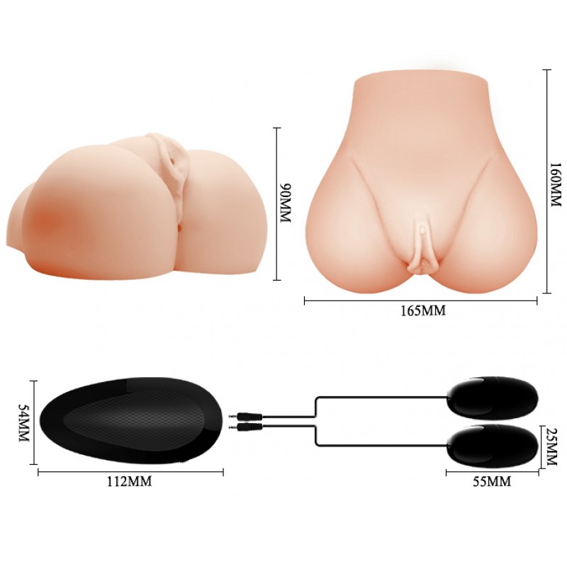 Две съемные вибропули управляются при помощи проводного пульта. Интенсивность вибрации регулируется колесиком на самом пульте.Отверстия для вибропуль находятся снизу, на дне игрушки. Мастурбатор достаточно легко промывать. После того, как вы промоете отверстия, игрушку рекомендуется хорошенько просушить и опудрить с помощью специальной пудры для игрушек. Благодаря этому изделие прослужит вам намного дольше.Мастурбатор работает от трех батареек типа ААА (в комплект НЕ входят!).Для более комфортного использования и сохранения качества материала рекомендуем использовать смазки только на водной основе.Размеры: общая длина 16,5 см, ширина 16 см, высота 9 см