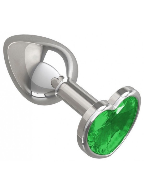 Металлическая анальная пробка с зеленым камушком в виде сердечка M код RY-014GREEN