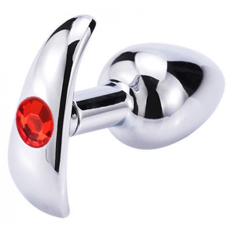 Металлическая анальная пробка с розовым камушком S