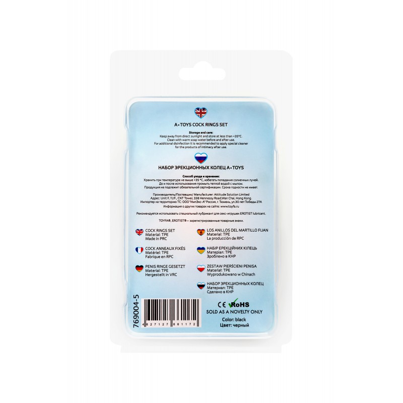 Набор колец TOYFA A-toys, TPE, Черные, Ø 3,5/3/2 см код 769004-5