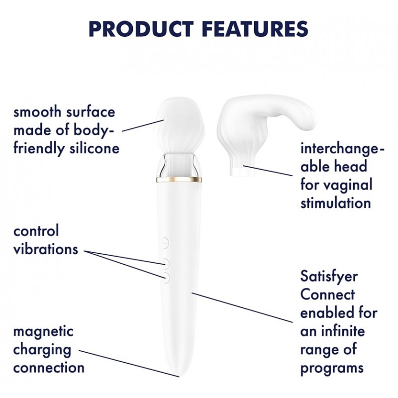 Девайс изготовлен из сверхмягкого, приятного для тела медицинского силикона, поэтому он мягкий на ощупь и легко скользит по коже — совершенно безопасен для использования.Вибратор полностью водонепроницаем, поэтому вы покойно сможете получать удовольствие в ванной или душе.Double Wand-er можно управлять с еще большей универсальностью с помощью Satisfyer Connect: с этим приложением вы можете не только создавать свои собственные программы вибрации, но также подключать свое устройство к Spotify или обмениваться идеями с другими пользователями в сообществе. И все это при 100% безопасности данных!