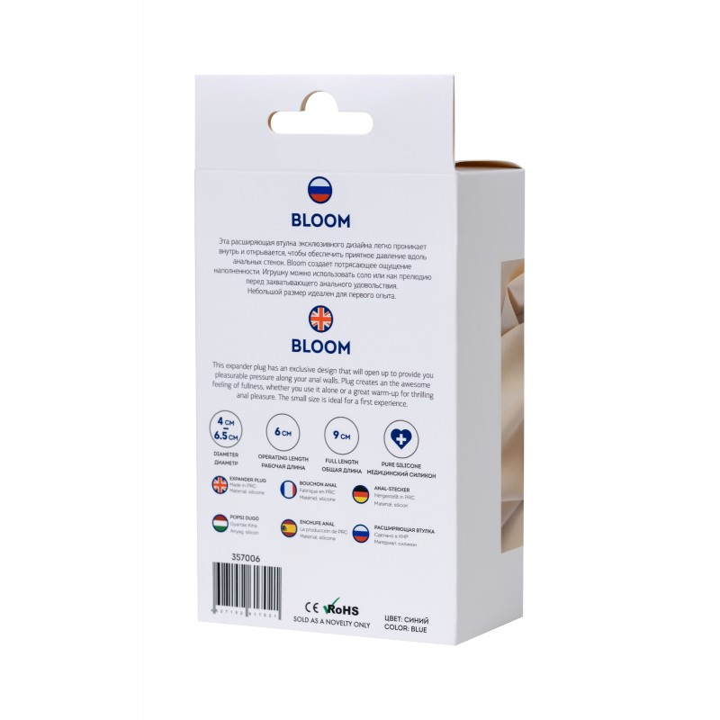 Bloom Эта расширяющая втулка эксклюзивного дизайна легко проникает внутрь и открывается, чтобы обеспечить приятное давление вдоль анальных стенок. Bloom создает потрясающее ощущение наполненности. Игрушку можно использовать соло или как прелюдию перед захватывающим анальным удовольствием. Средний размер подойдет как новичкам, так и опытным любителям.