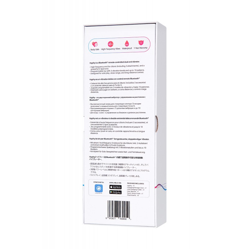 Двухсторонний вибратор Lovense Hyphy - не просто игрушка, этот портативный интимный гаджет для сверхмощного и быстрого оргазма имеет широкий диапазон применения. С одной стороны твердый ствол с изгибом, который идеально подходит для проникновения и стимуляции зоны G. Вторая сторона в виде тонкого наконечника предназначена для стимуляции наружных интимных и эрогенных зон. Lovense Hyphy имеет два независимых мотора. Погружная часть оснащена глубокой проникающей вибрацией. Мотор со стороны наконечника позволяет использовать высокочастотную вибрацию для принципиально новых ощущений. В комплекте с Lovense Hyphy поставляются три разные силиконовые насадки для тонкого кончика, которые точечно воздействуют на соски или клитор, вызывая мгновенный фантастический оргазм, или имитируют нежные оральные ласки. Высокотехнологичный Lovense Hyphy понравится любой девушке - внешний вид девайса напоминает гаджет для красоты и здоровья. И действительно, насыщенные и глубокие оргазмы позволят вашей коже сиять, а глазам светиться. Lovense Hyphy позволяет использовать встроенные 10 режимов вибрации с помощью кнопок на корпусе. Кроме того, технология подключения Bluetooth расширяет управление игрушкой через смартфон с помощью приложения Lovense Remote. Инновационное приложение рассчитано на дистанционное управление игрушкой независимо от расстояния. Передать контроль партнеру, создать новые режимы и ритмы под любимый трек и многое другое - Lovense расширяет границы вашей фантазии. Стильный, незаметный и компактный вибромассажер всегда под рукой. Удобный кейс с отдельным отсеком для насадок одновременно обеспечивает хранение и подзарядку любимой игрушки. Эргономичный дизайн и полная водонепроницаемость расширяют границы применения даже в путешествии. два мощных мотора с разной частотой вибрации безопасный медицинский силикон три насадки: шарик, U-насадка, язычок водонепроницаемость IPX7 магнитная зарядка USB время работы до 310 минут время зарядки 75 минут