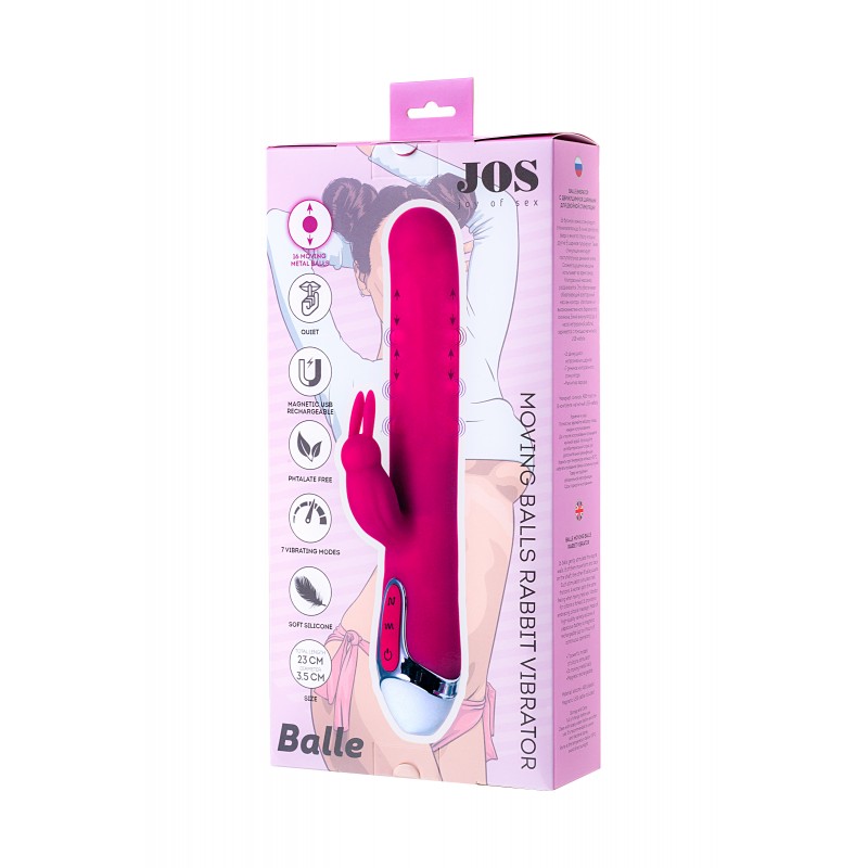 Вибратор с клиторальным стимулятором JOS BALLE, с движущимися шариками, силикон, розовый, 23 см код 783002