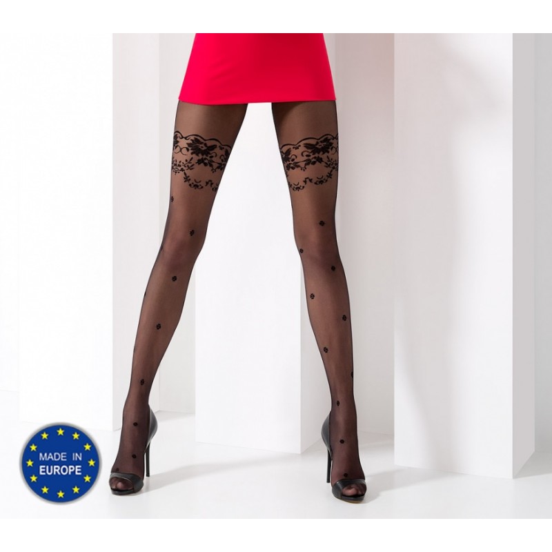 Колготки с имитацией чулок в горошек, привлекут внимание к вашим ногам!Колготки пошиты из высококачественной эластановой пряжи, оплетенной полиамидным шелком, без выделенных трусиков.