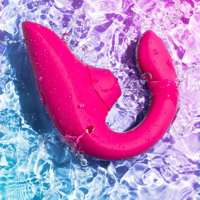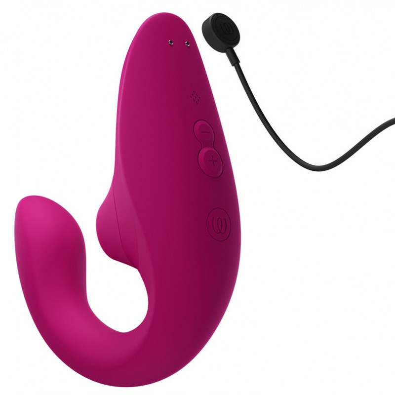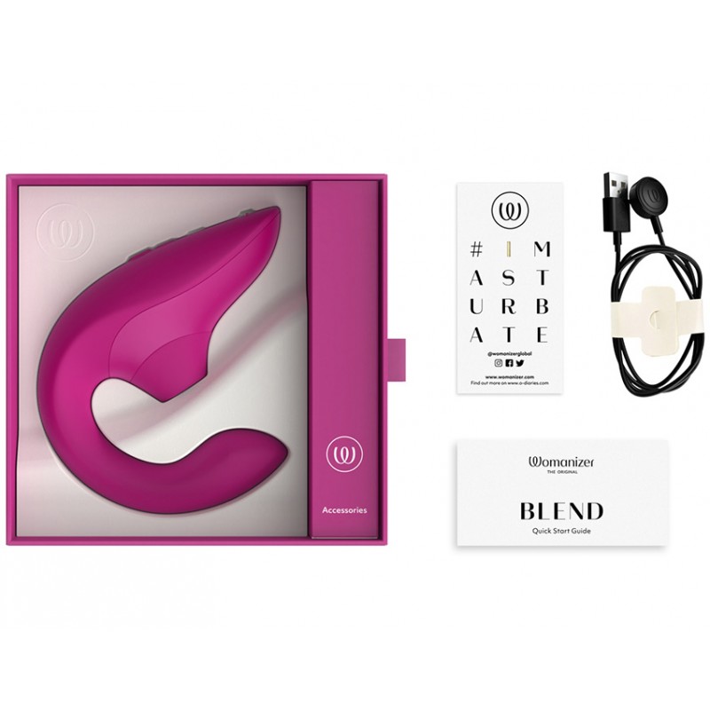 МЯГКАЯ ВАКУУМНАЯ УПАКОВКА Бесконтактный вакуумно-волновой стимулятор клитора с вибрацией и вагинальным отростком Womanizer Blend малиновый код WZBD1SG5