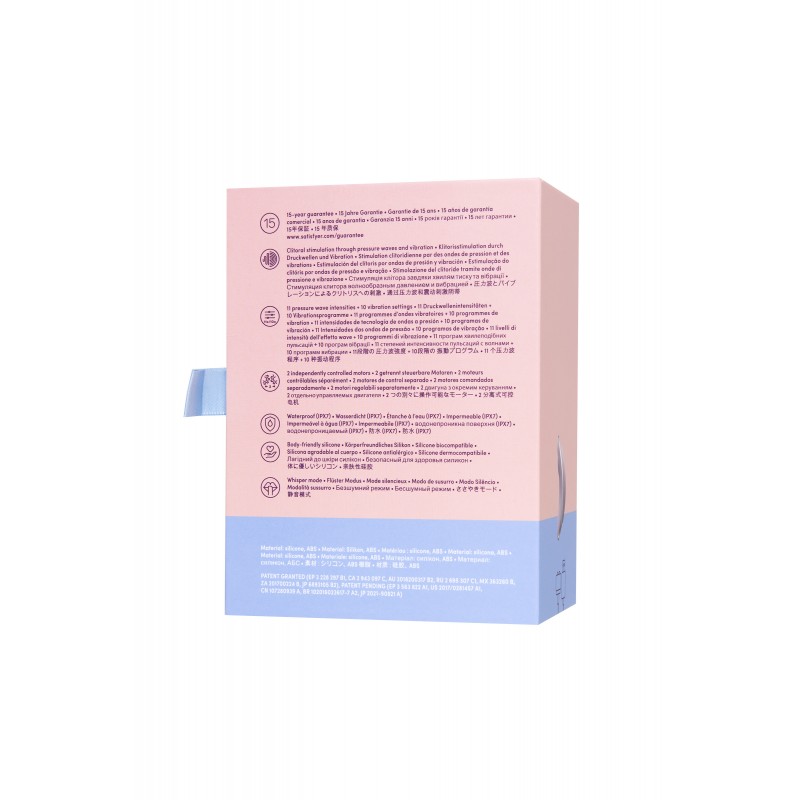 С двумя независимо управляемыми двигателями, дающими Вам индивидуальный контроль над 11 воздушными импульсами и 10 настройками вибрации!