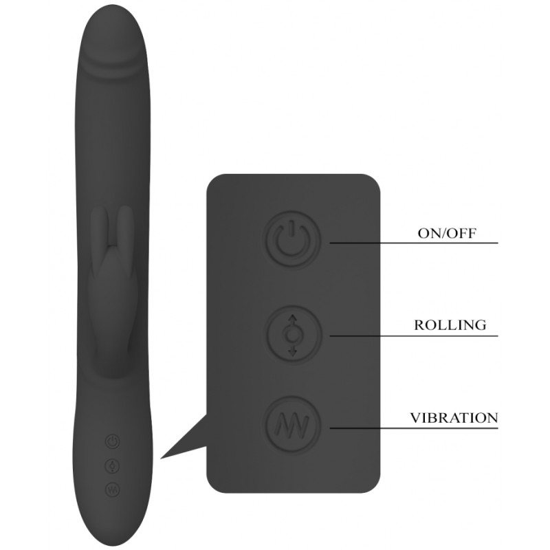 Вибромассажер Byron с клиторальным стимулятором и движущимися в стволе шариками черный код BW-069001