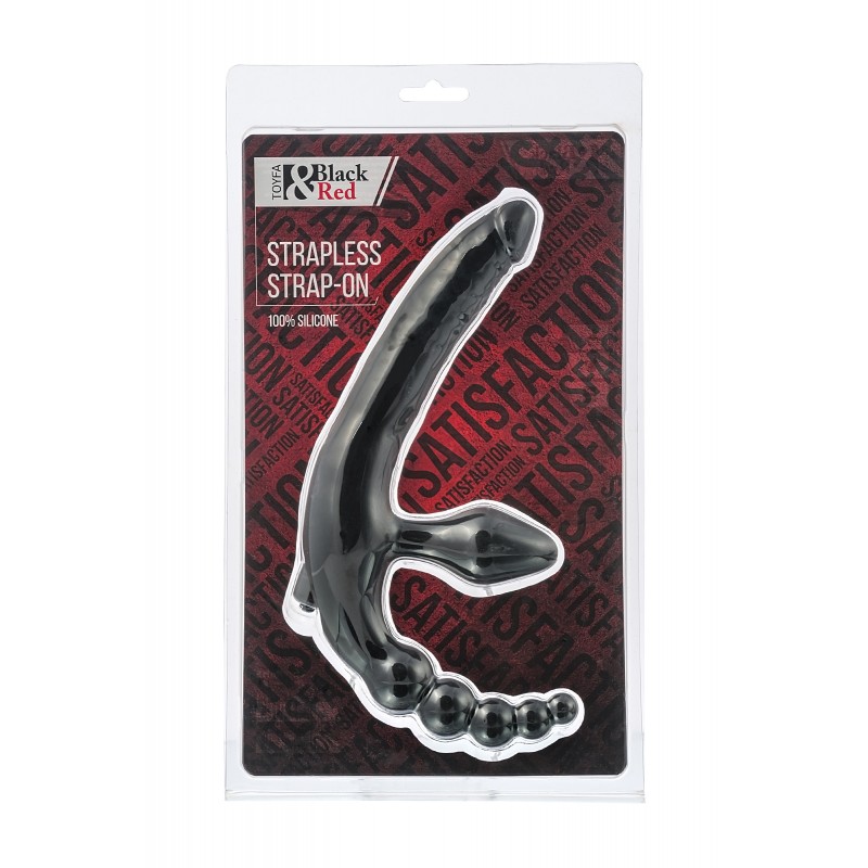 Безремневой страпон Black & Red by TOYFA с вибропулей, влагостойкий, силикон, чёрный, 35 см код 901401-5