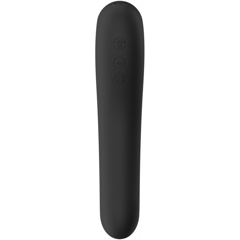 Satisfyer Dual Kiss – клиторальный стимулятор с двойным действием, который с легкостью покорит любую женщину и гарантированно доставит ей неземное удовольствие! Он работает мягко, но уверенно, стимулирует с помощью вакуума и вибрации, поэтому ощущения от его применения естественные, почти неотличимые от умелых оральных ласк.Это продуманная, полностью безопасная, качественная интимная игрушка, которая обязательно должна быть у каждой женщины. Стимулятор помогает достичь наивысшей точки наслаждения, вне зависимости от того, как его используют: для предварительного настроя, возбуждения; соло, стимулируя только клитор и половые губы; или как дополнение к традиционному половому акту с партнером.Вакуумно-волновой вибратор Satisfyer Dual Kiss – игрушка, которой нет аналогов. Она возбуждает, массирует нервные окончания клитора (или других чувствительных участков) без физических прикосновений, а поэтому даже частое применение Satisfyer не вызывает привыкания, снижения чувствительности или, наоборот, дискомфорта. Бесконтактная технология – залог ярких и многократных оргазмов, которые часто недоступны женщинам, использующим традиционные вибраторы и другие игрушки.Игрушка побалует Вас невероятным функционалом: