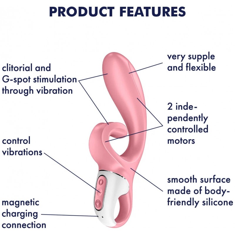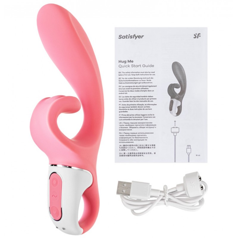 Изогнутая и объемная форма вагинального отростка балуют точку G, в то время как загнутый стимулятор клитора обеспечивает чувственную стимуляцию клитора и половых губ! Благодаря необычной форме клиторального стимулятора, Ваша жемчужина удовольствия стимулируется сверху, с одновременным захватом половых губ.За счёт толстого ствола и увеличенной головки создаётся приятное ощущение наполненности во влагалище, это касается и клиторального отростка — он достаточно объемный, поэтому действует не точечно, а полностью покрывает своей поверхностью клитор. Satisfyer Hug Me представляет собой идеальное сочетание сильных моторов и высококачественного упругого медицинского силикона.