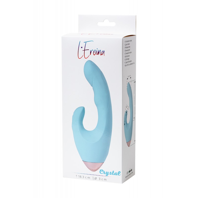 Вибратор с клиторальным стимулятором LEROINA by TOYFA Crystal, силикон, голубой, 18,3 см код 561017