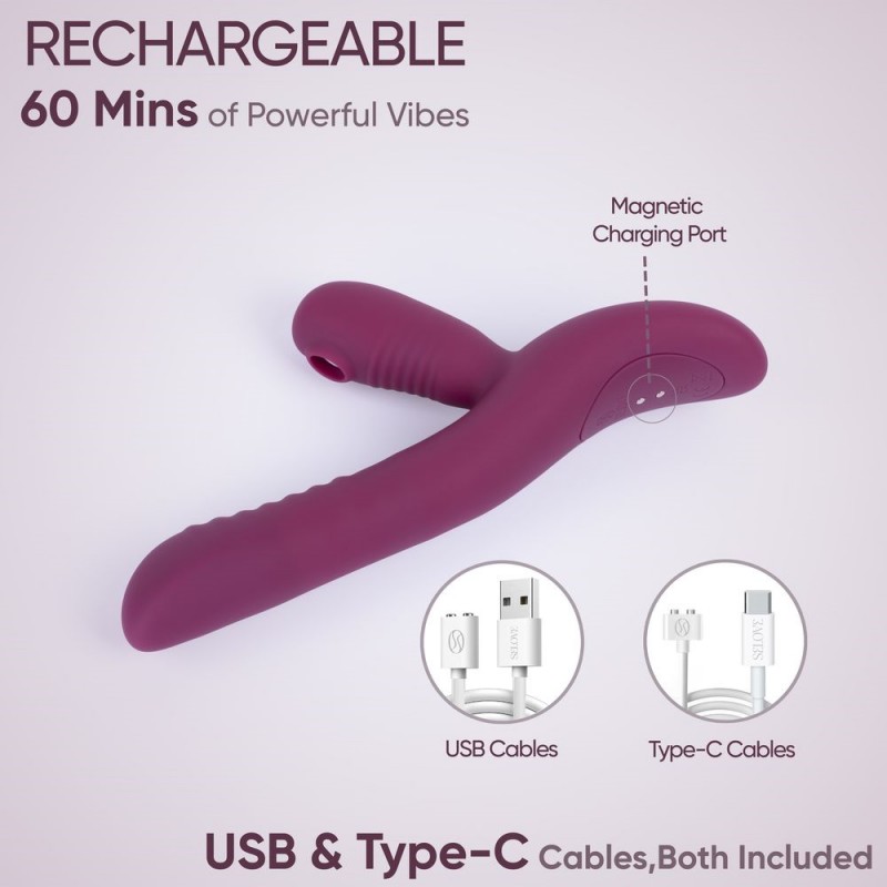 Вы можете использовать каждый мотор по отдельности или вместе, создавая индивидуальный опыт, адаптированный под ваш ритм и предпочтения. Игрушка предлагает 10 режимов пульсации и вибрации для точки G, а также 10 режимов воздушного всасывания для клитора, позволяя подобрать ритм и интенсивность под настроение!Вибратор-кролик Selove работает бесшумно и покрыт мягким медицинским силиконом, который приятно ощущается на коже. Водонепроницаемость уровня IPX7 делает игрушку подходящей для использования в душе или ванне - это поможет открыть новые грани удовольствия!Магнитный порт зарядки обеспечивает удобство, а в комплект входят два кабеля — USB и Type-C. Полная зарядка занимает около 120 минут и обеспечивает до 60 минут автономной работы. В комплект входит канцелярский нож для вскрытия джутовой нити с сургучной печатью.Для более комфортного использования и сохранения качества материала рекомендуем использовать смазки только на водной основе.Размеры: общая длина 22,5 см, рабочая длина вагинального отростка 13 см, максимальный диаметр вагинального отростка 3,2 см, длина клиторального отростка 9 см