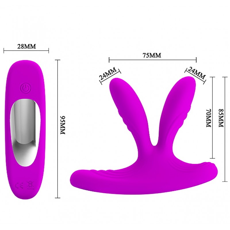Еще одна новинка от дизайнеров компании Baile – универсальный вибромассажер PrettyLove Magic Fingers!Игрушка полностью оправдывает название и весьма эффективно доставляет удовольствие, имитирующее ласки пальцами.Девайс представляет собой горизонтально расположенное основание, к которому присоединены два эластичных отростка, в каждом из которых расположено по моторчику. Оба конца основания предназначены для стимуляции клиторальной зоны и ануса, при введении отростков вагинально.Стимулятор особенно эффективен в процессе воздействия на зону G и область клитора.