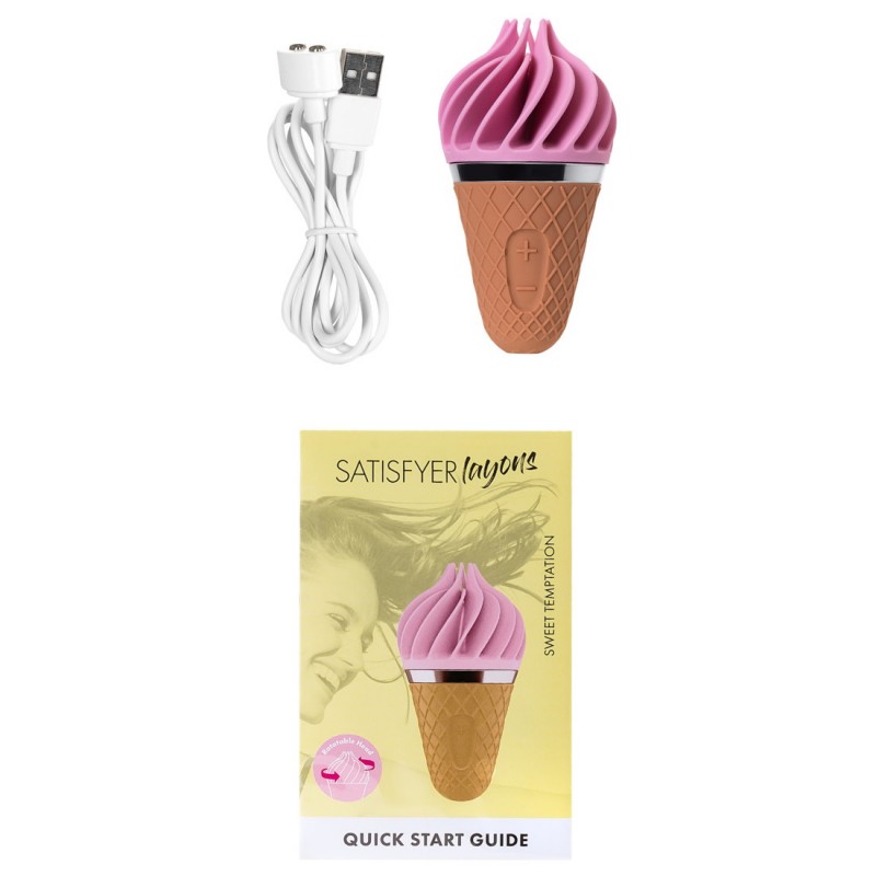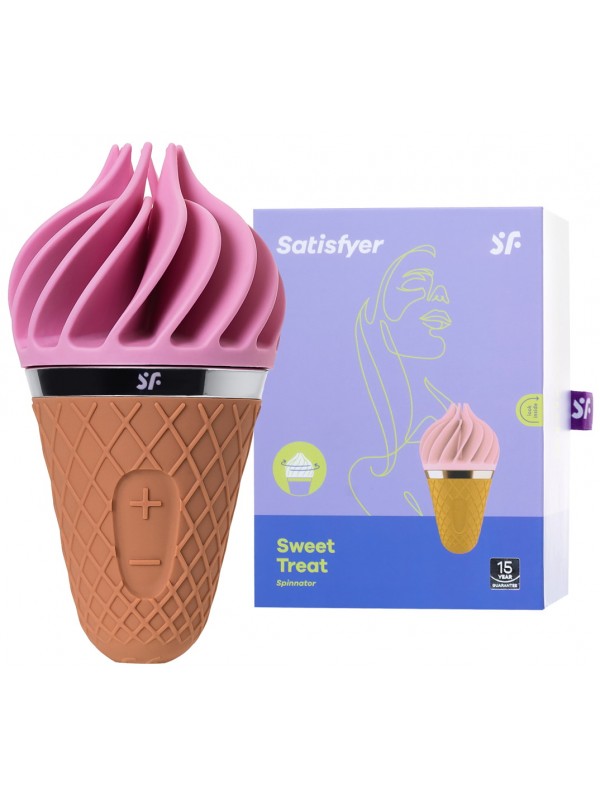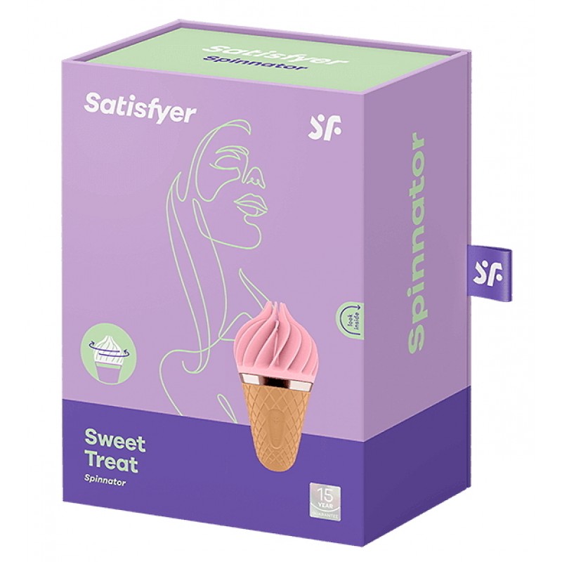Satisfyer Sweet Treat — влюбленность, сжатая до карманного формата! Вибростимулятор линейки Sweet Treat соединяет в себе необычный функционал, оригинальный дизайн и невероятно мягкий материал.Satisfyer Sweet Temptation - совсем не простой стимулятор .Он не вибрирует, как многие могли бы подумать. Его головка вращается! Сверхмягкие бархатистые лепесточки танцуют на эрогенных зонах, доставляя уникальное, ни с чем не сравнимое ощущение! Выглядит Sweet Temptation как очень вкусное мороженое. Из миниатюрного вафельного стаканчика выглядывает объемная головка, состоящая из множества лепестков. Головка стимулятора крутится и ласкает клитор так, как это не сможет сделать ни другая игрушка, ни партнер.