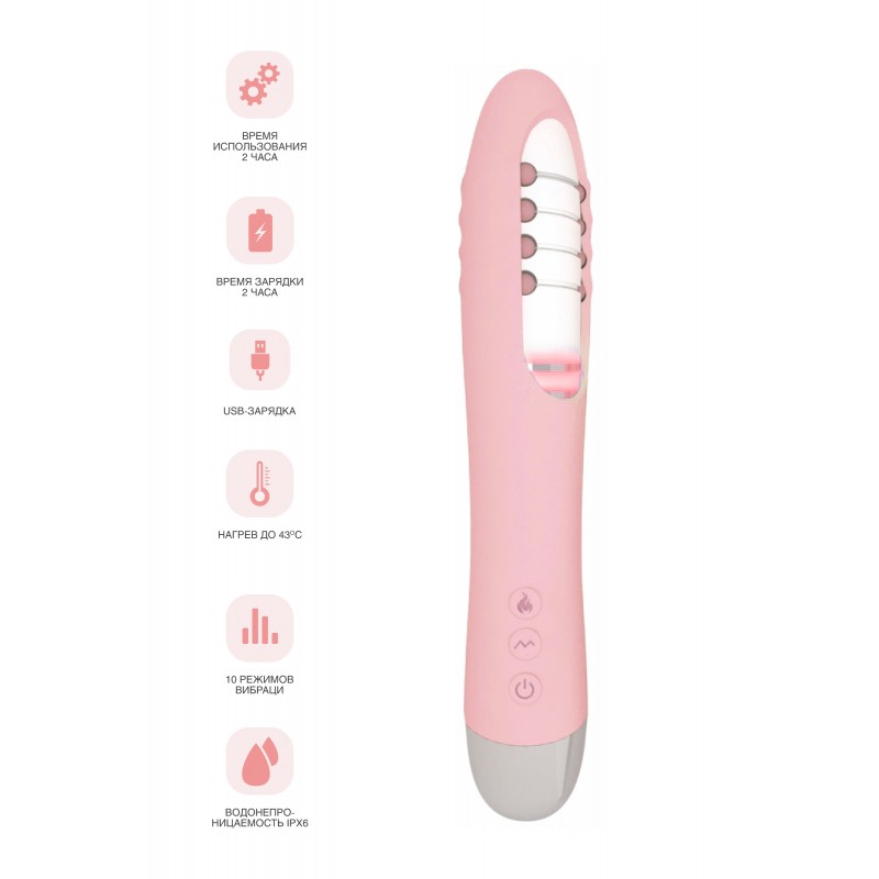 Вибратор с функцией нагрева и пульсирующими шариками PHYSICS FAHRENHEIT, силикон, розовый, 19 см код 796005