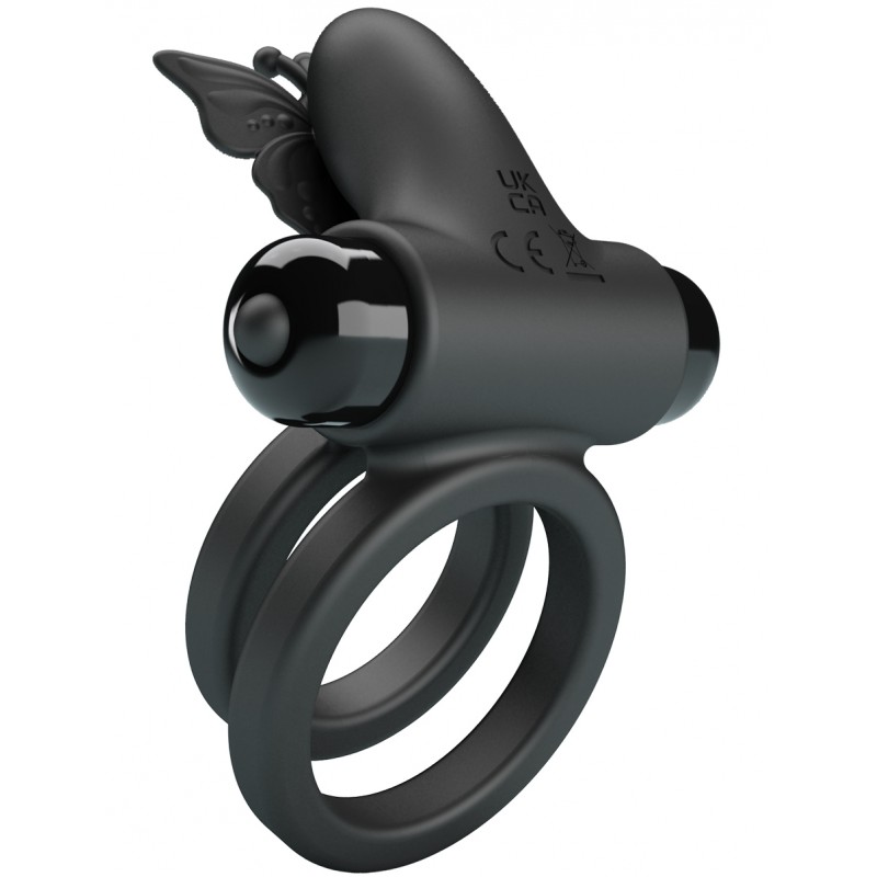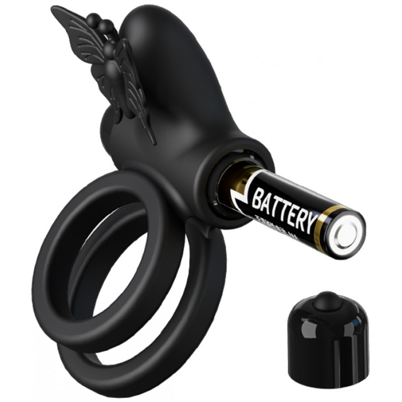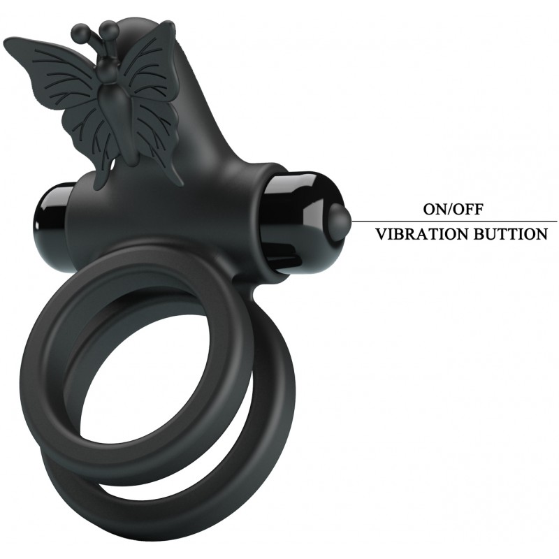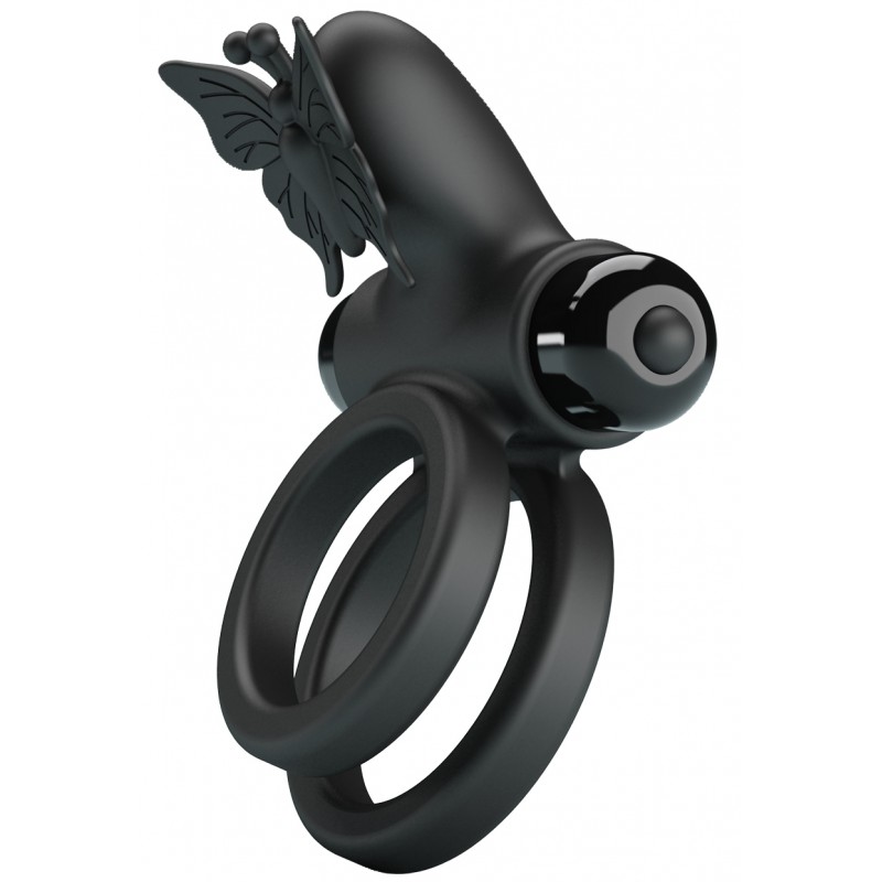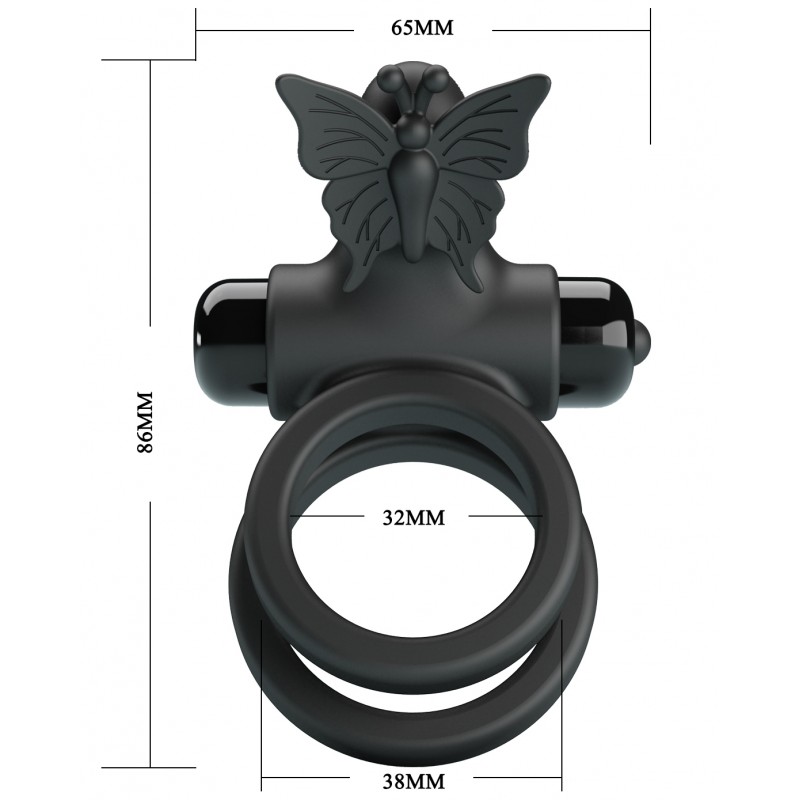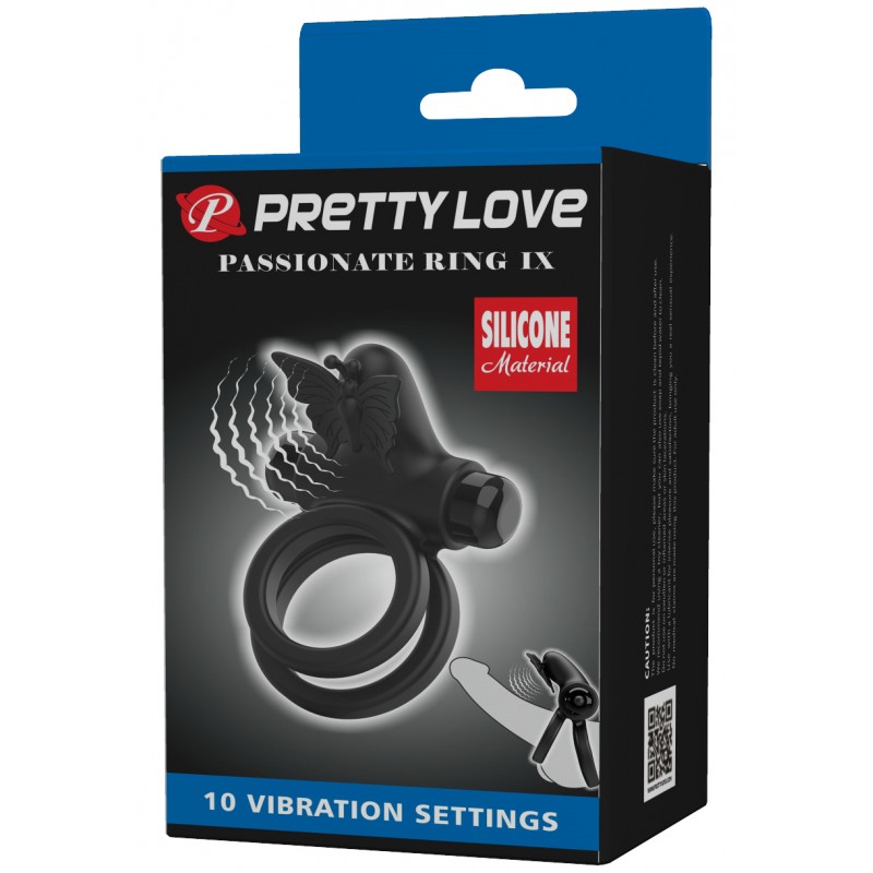 Эрекционное виброкольцо Pretty Love Passionate Ring подарит Вам крепкую эрекцию, продлит половой акт и доставит партнерше дополнительное удовольствие благодаря клиторальной стимуляции!Игрушка представляет собой силиконовое кольцо с петлей на мошонку. Так же присутствует элемент в виде бабочки, который предназначен для стимуляции клитора. Кольцо оснащено 10 режимами вибрации, которые удобно переключаются с помощью кнопочки на вибропуле. Мягкое и шелковистое на ощупь виброкольцо выполнено из высококачественного силикона - гиполаллергенного материала, легкого в уходе.Этот аксессуар станет одной из Ваших любимых игрушек на ночь!Для более комфортного использования и сохранения качества материала рекомендуем использовать смазки только на водной основе.Размеры: общая длина 8,6 см, максимальная ширина 6,5 см, диаметр колец в нерастянутом состоянии 3,2 см и 3,8 см